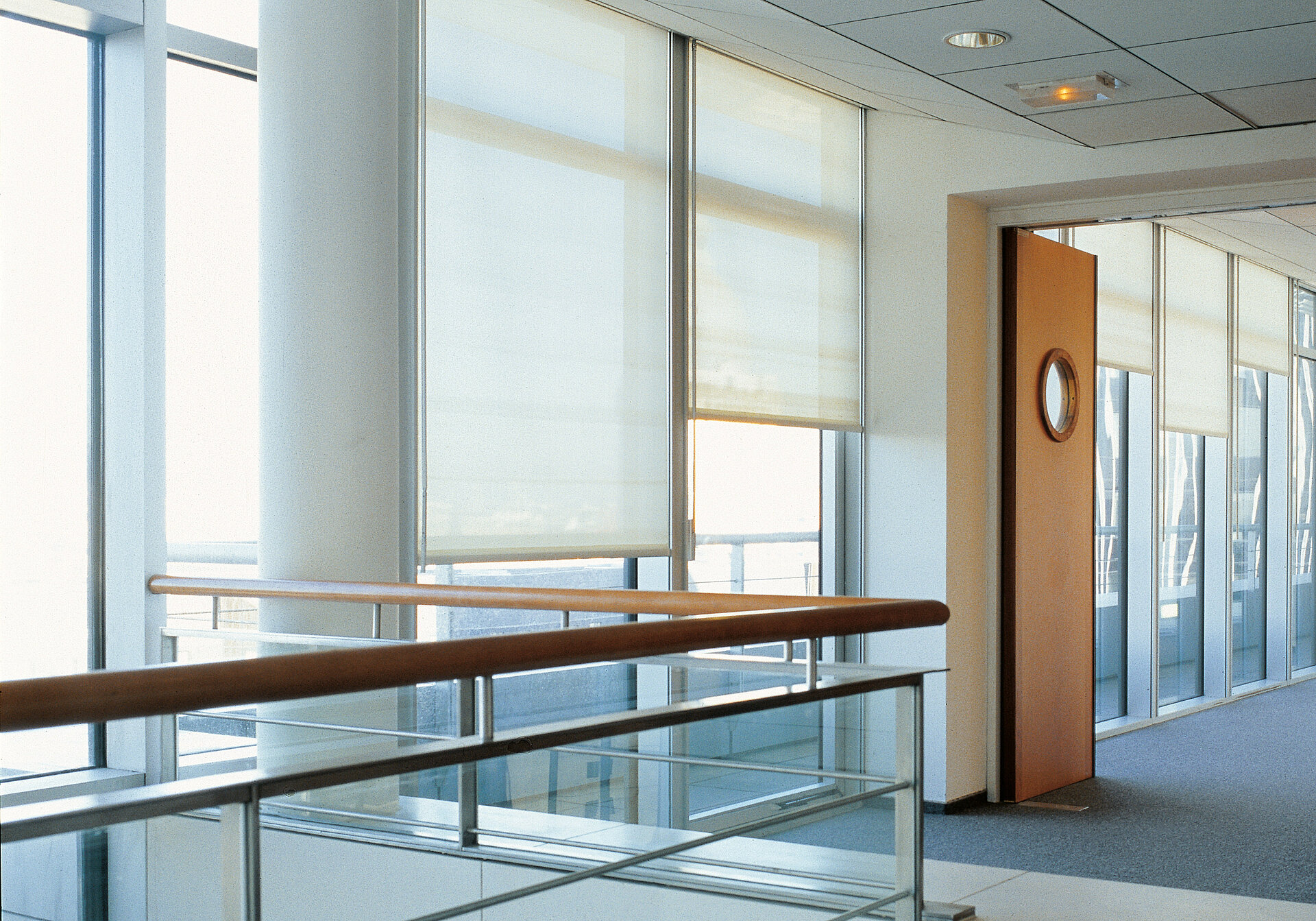 Das Kassettenrollo 4000 wurde entwickelt, um Licht optimal zu streuen und bietet effizienten Sonnenschutz bei gleichzeitiger Erhaltung der Sicht nach draußen. Dank der Anbringung im Inneren sind ihr bauliche Auflagen jeglicher Art egal und auch Wetterkapriolen können ihr nichts anhaben. Die Markise 4000 kann in jedes Gebäude integriert werden und trägt zur Verbesserung der Arbeitsbedingungen bei, indem sie ein gedämpftes, angenehmes Licht sowie ein wohltemperiertes Klima schafft. Sie kann mit verschiedenen Tucharten mit speziellen technischen Eigenschaften versehen werden, die aggressive Sonnenstrahlen absorbieren. Das Tuch entspricht der französischen Brandschutzklasse M1 und hat einen speziellen Reflexions- und Absorptionsgrad sowie Wärmedurchgangskoeffizienten, sodass es auch den Sicherheitsanforderungen von öffentlichen Einrichtungen, Schulen, Krankenhäusern usw. gerecht wird. Die mit einer Vielzahl an Eigenschaften und in unzähligen Farbtönen erhältlichen Markisen passen sich an verschiedenste Anforderungen an.